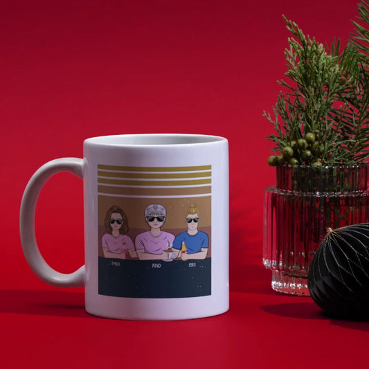 Ikääntynyt perhepariskunta – Hyvä kahvi, hyvä päivä – Personoitu kynnysmatto