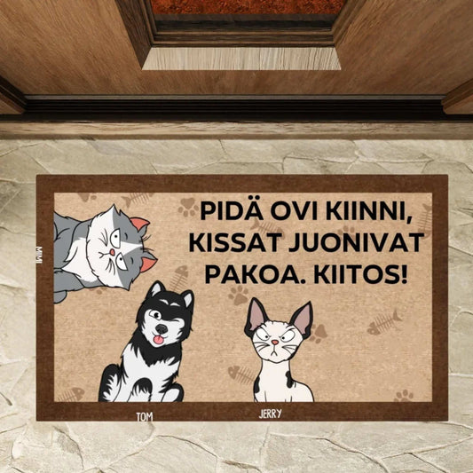 Lemmikit juonivat pakoa – Personoitu kynnysmatto