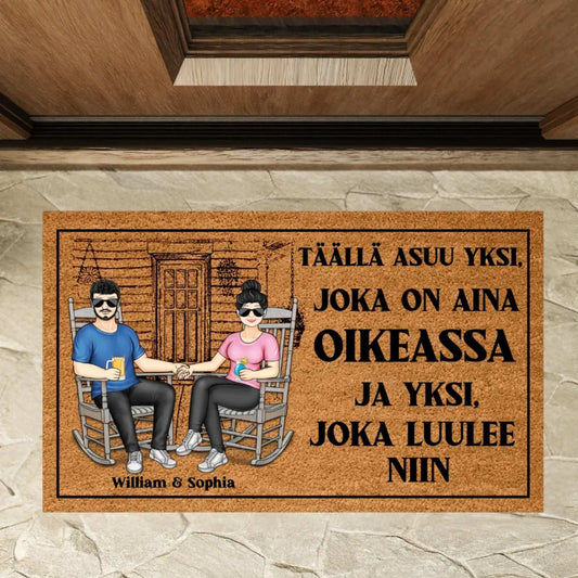 Ikääntynyt perhepariskunta – Joka on aina oikeassa – Personoitu kynnysmatto
