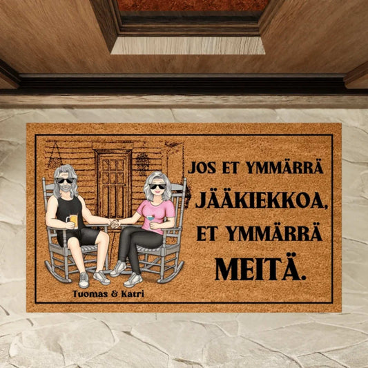 Ikääntynyt perhepariskunta – Et ymmärrä jääkiekkoa – Personoitu kynnysmatto