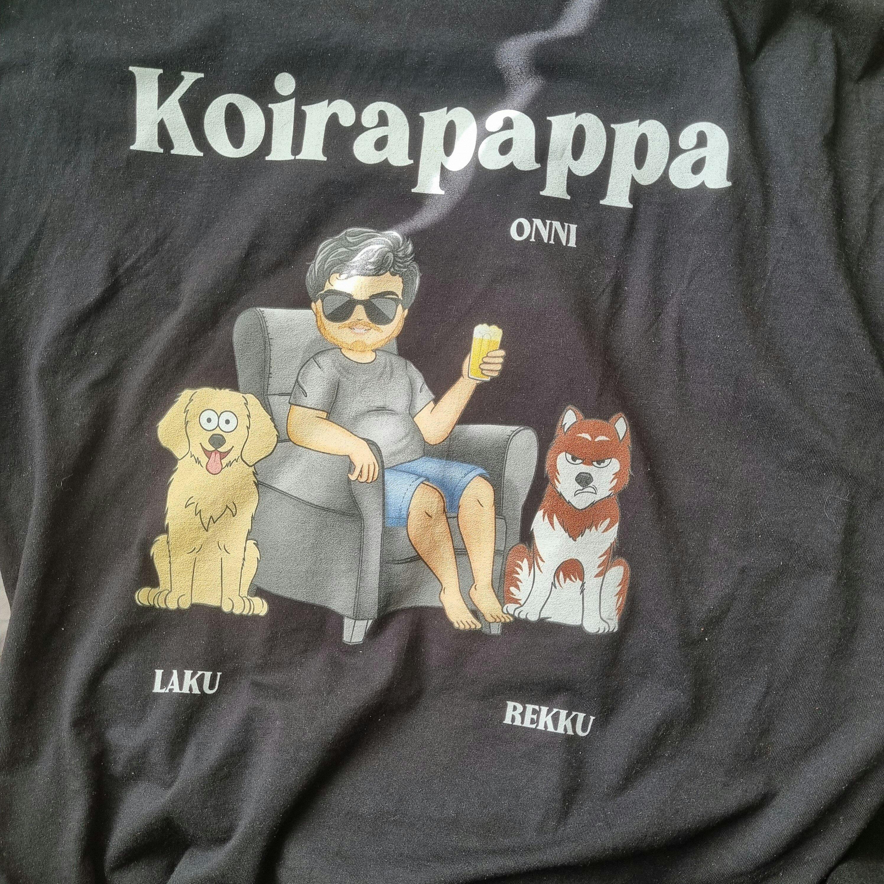 Personoitu T-paita, huppari, neule. Täydellinen tuote kaikille koirapapoille ja koiran ystäville. Myös ainutlaatuinen lahja läheisillesi.